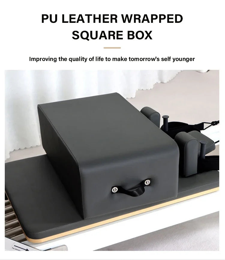 Premium aluminum Pilates Reformer with German springs, microfiber leather, and ergonomic design — built for studios and advanced home users.