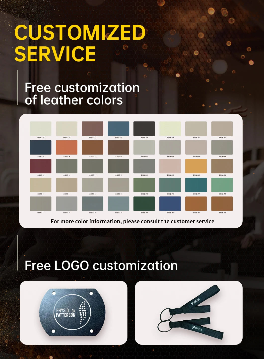 Foldable Pilates Machine with box, smooth rollers, and anti-slip leather. Durable aluminum build, easy storage, and perfect for full-body workouts.